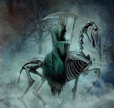 And when he had opened the fourth seal, I heard the voice of the fourth beast say, Come and see. And I looked, and behold a pale horse: and his name that sat on him was Death, and Hell followed with him. And power was given unto them over the fourth part of the earth, to kill with sword, and with hunger, and with death, and with the beasts of the earth. Revelation 6: 1-8 (KJV)